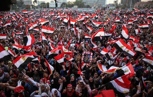 | Des partisans d’Abdel Fattah al-Sissi sur la place Tahrir, au Caire, fêtent son élection à la tête de l’Égypte, le 3 juin. |