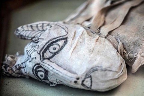 | Une momie de félin est exposée le 23 novembre dans la nécropole de Saqqarah, au sud du Caire. |