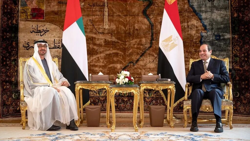 | Les présidents égyptien Abdel Fattah al-Sissi (droite) et des Émirats arabes unis, Mohammed ben Zayed Al Nahyane. |