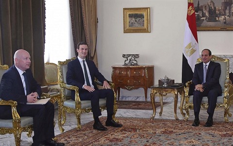 | Le président égyptien Abdel Fattah al-Sissi (droite) et le haut conseiller du président des États-Unis, Jared Kushner (2e à gauche), le 21 juin en |