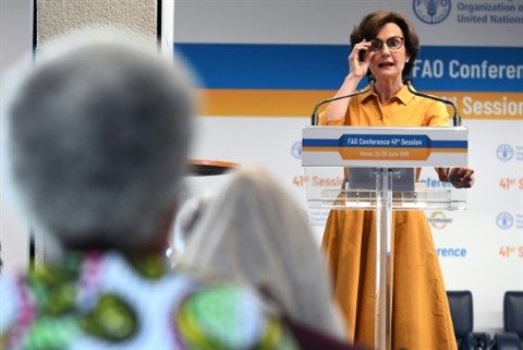 S'exprimant en espagnol, en anglais et en français, elle a estimé que la FAO avait besoin de "nouvelles idées" et d'"innovations", tout en jugeant que la coopération avec les gouvernements était "essentielle" pour réduire la faim dans le monde qui touche 820 millions de personnes.