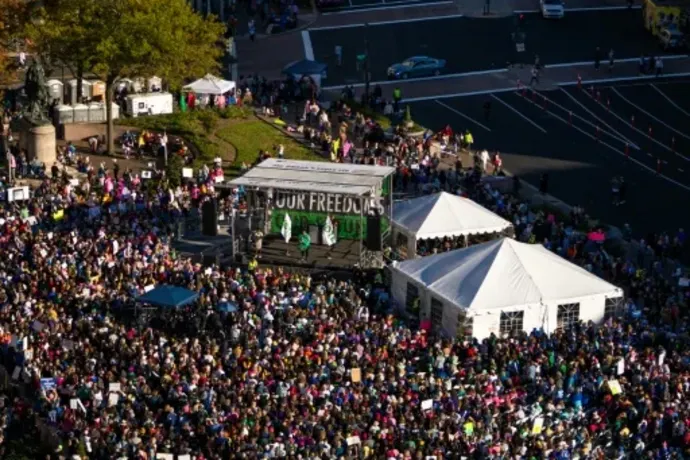 >> À Washington, des milliers de femmes marchent pour leurs droits et pour Harris