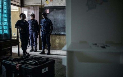 Des policiers congolais surveillent du matériel électoral à Kinshasa, en République démocratique du Congo, le 28 décembre 2018.                         Photo: AFP/VNA/CVN              |