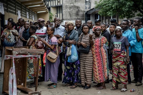 | Des électeurs congolais attendent leur tour pour voter dans un bureau de vote à Kinshasa, le 30 décembre 2018. |