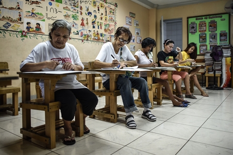 | Des femmes philippines votent dans un centre de scrutin, le 9 mai à Manille. |