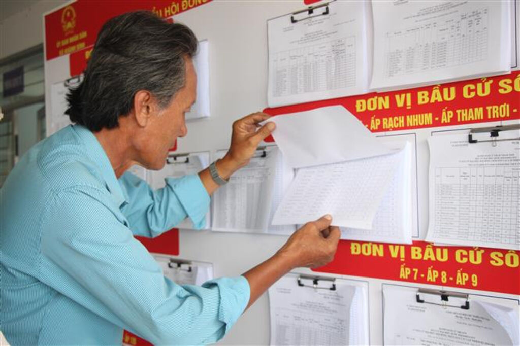 | Un habitant de la commune de Khanh Binh de la province de Cà Mau consulte la liste électorale. |