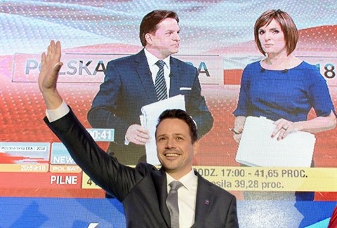 | Le candidat de l'opposition à la mairie de Varsovie, Rafal Trzaskowski, arrive en tête, le 21 octobre lors des élections locales en Pologne. |