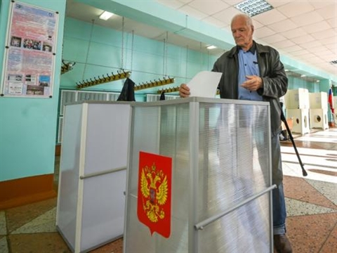 | Un homme vote aux élections régionales, le 13 septembre à Kostroma, en Russie. |