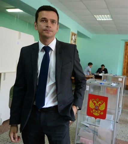 | Ilia Iachine, candidat du parti d'opposition Parnas, dans un bureau de vote, le 13 septembre à Kostroma, lors des élections régionales en Russie. |