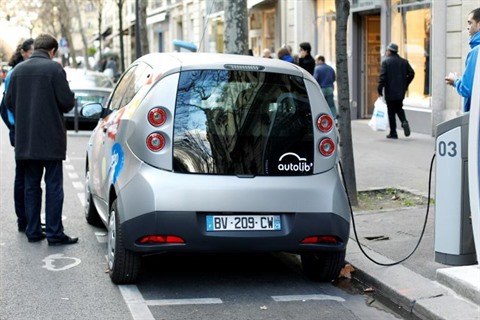 | Une Autolib' en charge dans une rue parisienne en 2011. Dix ans après, la gestion des bornes est reprise par le groupe Total. |