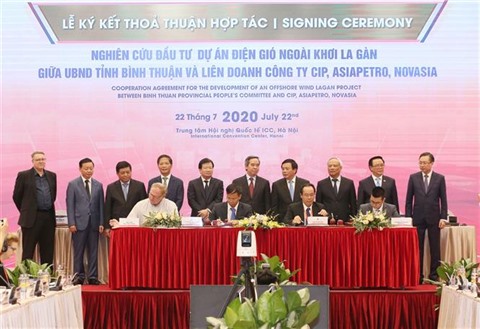 | Signature d’un protocole d'accord entre Copenhagen Infrastructure Partners, Asiapetro, Novasia Energy et la province de Binh Thuân, le 22 juillet à Hanoï. |