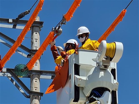 | Réparation du réseau électrique à Quang Binh (Centre). |
