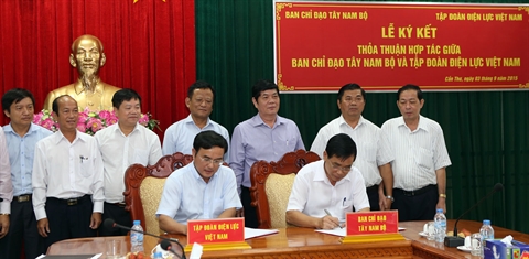 | Signature d'un accord de coopération entre le Comité de pilotage du Sud occidental et le groupe Électricité du Vietnam, le 3 septembre à Cân Tho. |