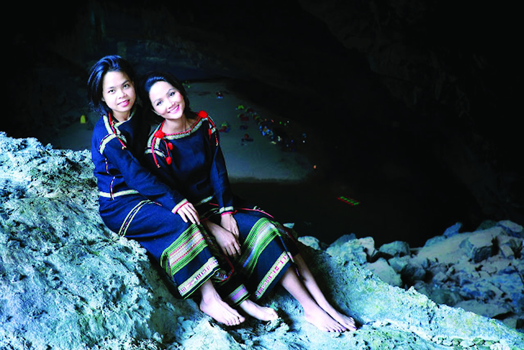 | H’Anetta (gauche) et la Miss Universe Vietnam 2017, H’Hen Niê, deux femmes Ê đê, à Son Đoòng en 2020. |