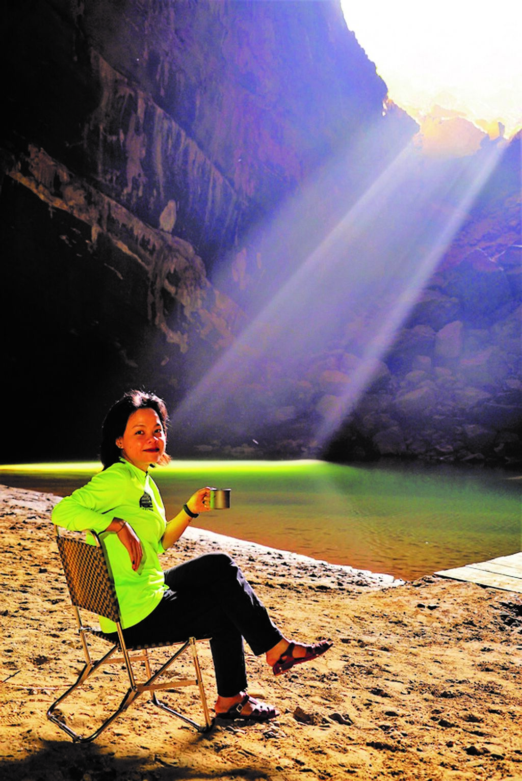 La jeune femme parle avec passion de Son Đoòng, du Parc national de Phong Nha - Ke Bàng aux paysages paisibles et magnifiques. La rivière Son au mois de mars a une eau limpide et calme comme une bande de soie douce. Les nuages blancs à la dérive le long des montagnes de Ke Bàng. Les petits bateaux à moteur amenant les visiteurs dans les grottes. “Son Đoòng a une beauté magnifique, différente à chaque fois que nous y entrons. Son charme change en fonction des périodes et des tronçons. Parfois, l’air est transparent dans un bief, alors qu’il y a des brumes avec des gouttelettes de rosée dans un autre”.