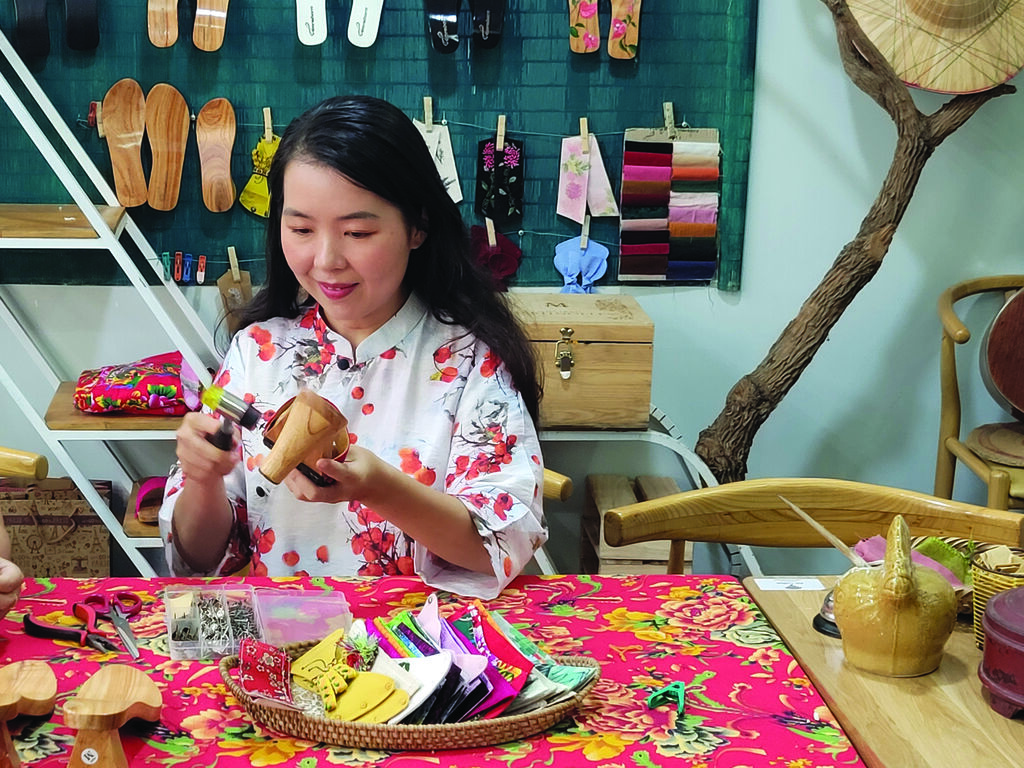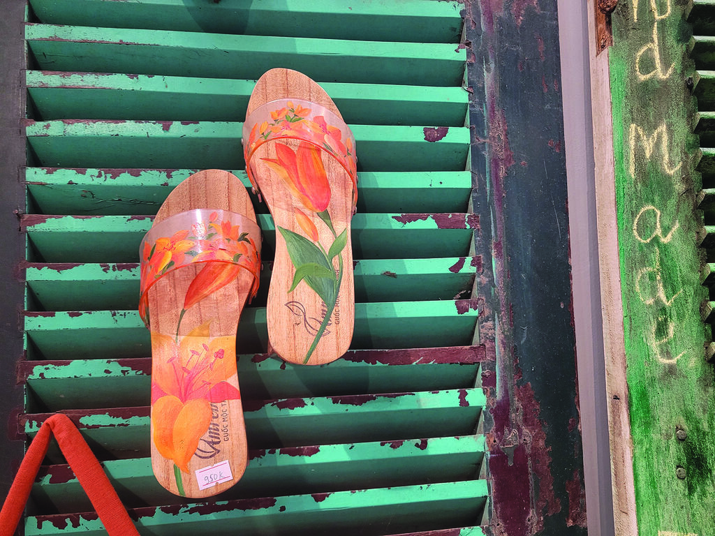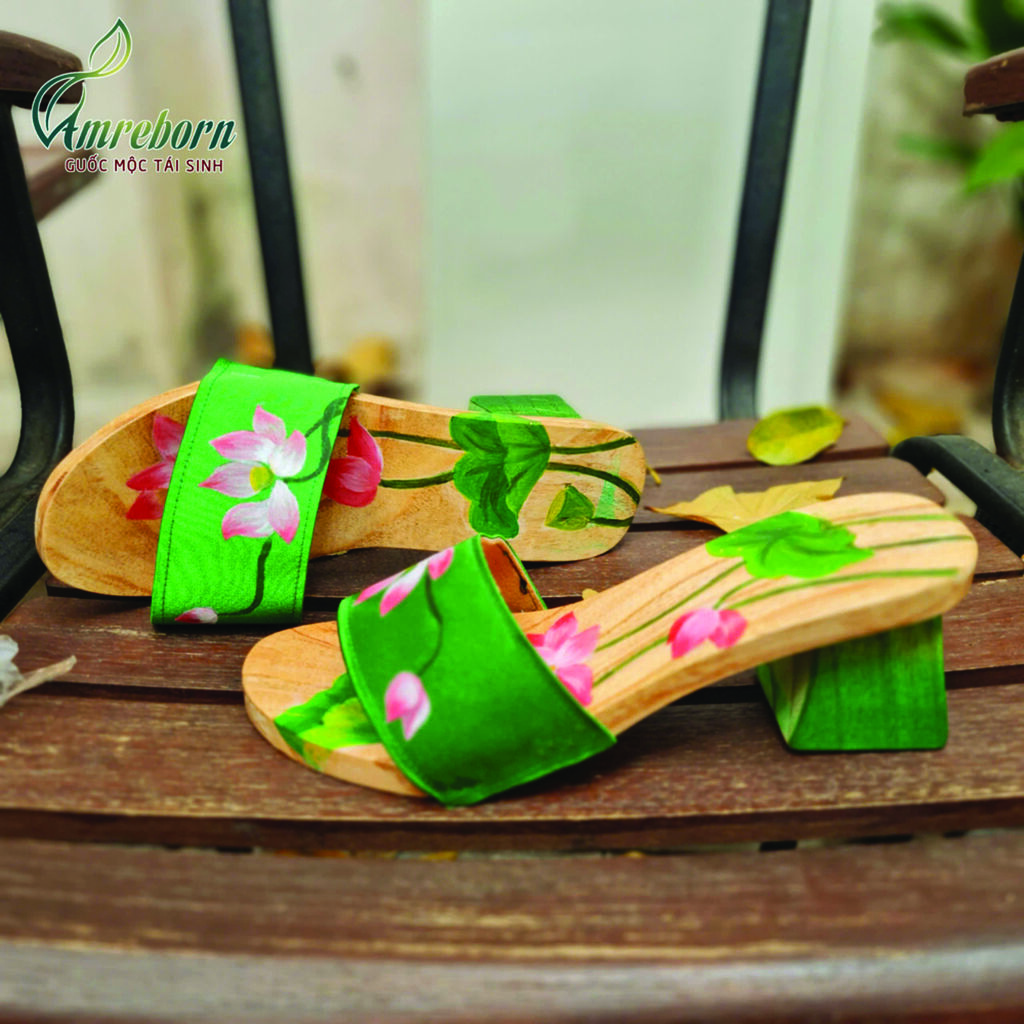 Lily Hoàng essaie toujours d’apporter une touche traditionnelle à ses sandales en bois. Par exemple, des paysages typiques des villages du Nord, des fleurs, des estampes folkloriques de Dông Hô et de Hàng Trông. Selon la période de l’année, les clients apprécieront différents thèmes. En fin d’année, ils plébiscitent souvent le thème des peintures folkloriques, alors qu’en début de l’année, les fleurs printanières auront leurs faveurs.