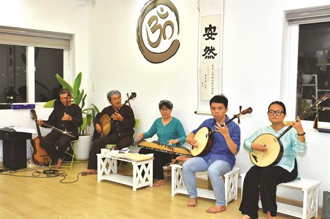 | Grande passionnée de musique traditionnelle, Luc Pham Quynh Nhi (1re à droite) tient aussi à la promouvoir. |