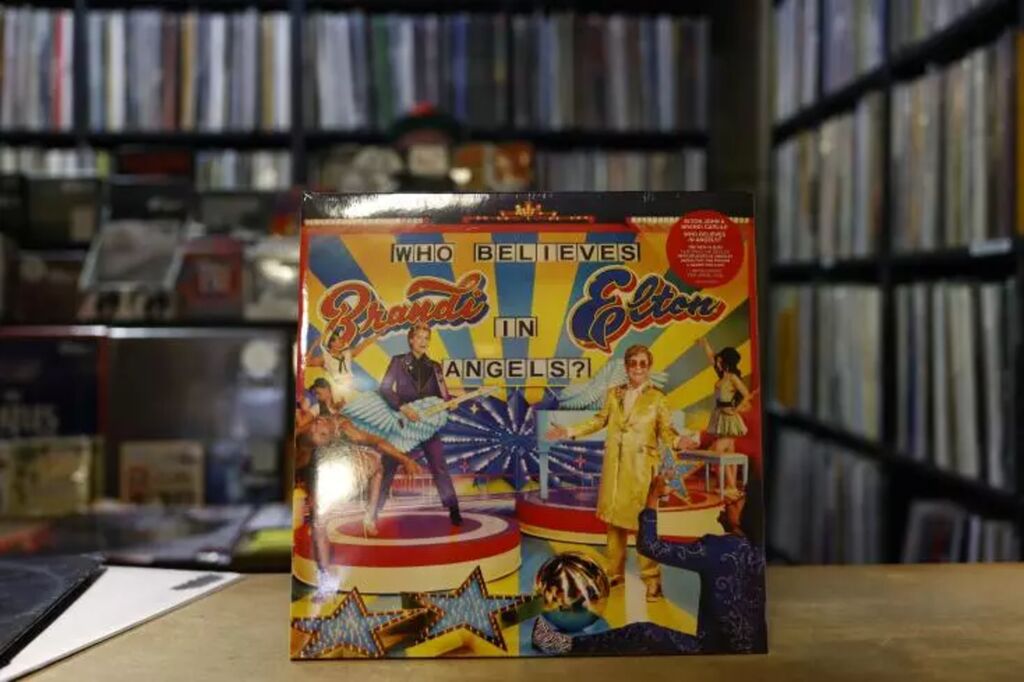 | Le nouvel album de la légende de la pop britannique Elton John, "Who Believes in Angels ?", le 4 avril 2025 à Londres. |