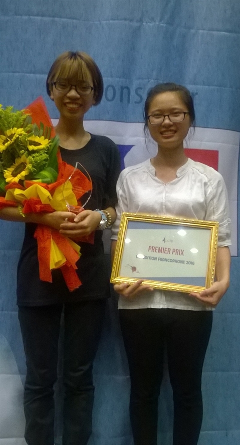 Créative et pleine d’énergie, l’équipe Em yêu tiêng Phap composée de Vu Thi Quynh Anh et de Hoàng Diêu Linh a su conquérir le public et le jury et a été désignée grande gagnante du concours. Elle a été récompensée pour ses connaissances générales, sa maîtrise du français et son style original. Le deuxième prix a été décerné à l’équipe Wanderlust et le troisième prix, à KXN. Le premier prix s’élève à quatre millions de dôngs et un abonnement d’un an au Courrier du Vietnam, le deuxième à trois millions et le troisième à un million de dôngs, ainsi qu’un abonnement respectif de 6 et 3 mois au Courrier du Vietnam, parrain de l’évènement. La valeur des prix s’élève à 25 millions de dôngs.
