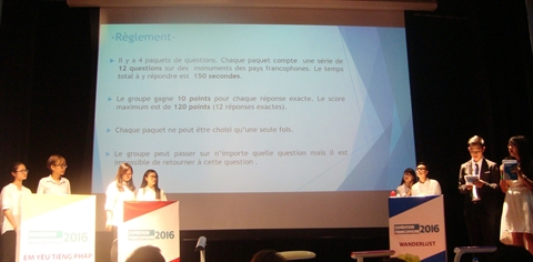 Après la demi-finale du 7 mai à l’École supérieure de commerce extérieur de Hanoi, trois équipes se sont qualifiées pour la finale de l’«Expédition francophone 2016» : deux équipes de l’École supérieure de commerce extérieur de Hanoi, Em yêu tiêng Phap et Wanderlust ; et une du lycée Amsterdam Hanoi, KXN.