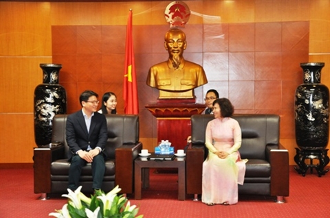 | La vice-ministre de l’Industrie et du Commerce, Hô Thi Kim Thoa et le directeur général d’Emart Vietnam, Choi Kwang Ho, le 14 juillet à Hanoi. |