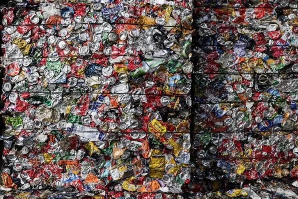 | Des emballages compactés destinés à être recyclés dans un centre de tri à Saint-Denis-de-Pile en Gironde le 19 décembre 2024. |