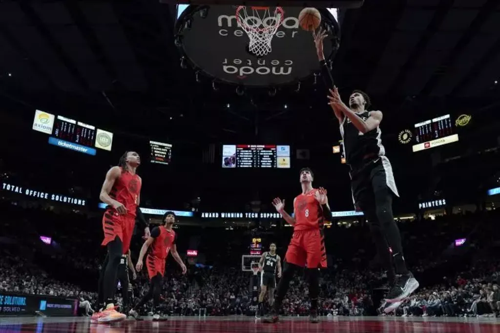 | Victor Wembanyama, auteur de 28 points, lors de la victoire des San Antonio Spurs à Portland en NBA, le 13 décembre 2024. |