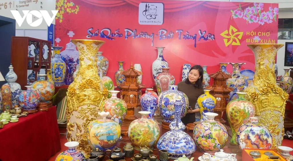 Le secteur de la céramique haut de gamme n’est pas en reste. Sur le stand de la céramique de Bat Tràng, tenu par l’artisane Dang Thi Lan, une paire de grands vases "Bách điểu chầu hoàng" - littéralement "cent oiseaux rendant hommage au phénix" - est proposée pour une valeur proche de 600 millions de dôngs.