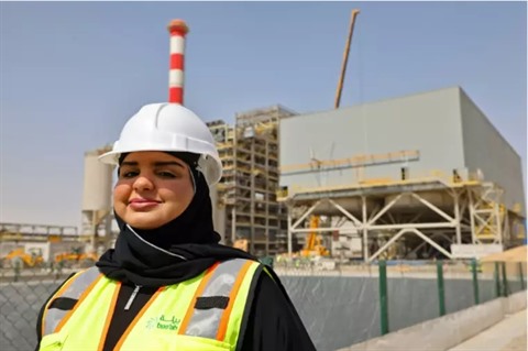 | L'ingénieure Nouf al-Wazir devant une installation de gestion des déchets en construction de la société Beeah à Sharjah, aux Émirats arabes unis, le 2 septembre. |
