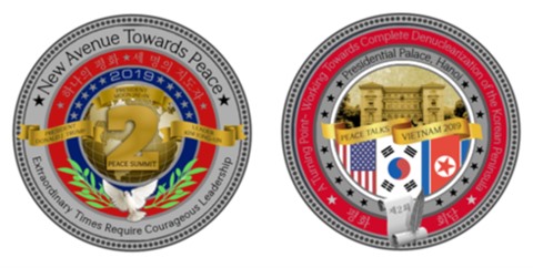 Samedi 23 février, les États-Unis ont aussi émis une pièce commémorative de ce 2e Sommet États-Unis - RPDC, au prix de 100 dollars. Mille exemplaires sont prévus. Elle montre l’image du Palais présidentiel à Hanoï, avec les mots "Pourparlers de paix, Vietnam 2019".