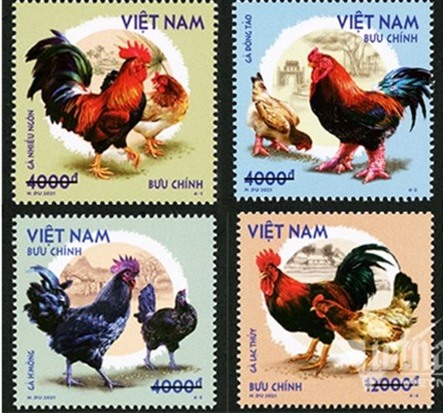 Avec le format carré 37 mm x 37 mm, les quatre timbres présentent des races telles que le poulet à plusieurs doigts, le poulet Dông Tao, le poulet H'mông et le poulet Lac Thuy, chacun coûtant entre 4.000 et 12.000 dôngs.