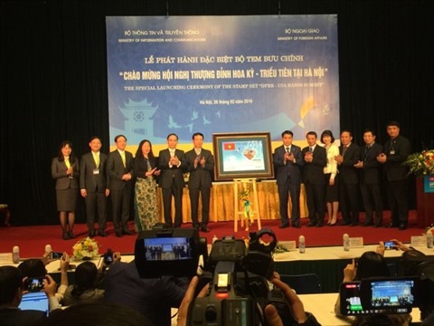 | La cérémonie d’émission d’une collection spéciale de timbres pour célébrer le 2e Sommet États-Unis - RPDC, le 26 février à Hanoï. |