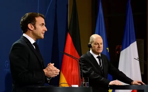 | Le président français Emmanuel Macron et le chancelier allemand Olaf Scholz, le 25 janvier. |