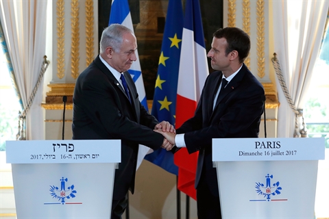 | Emmanuel Macron (droite) et Benjamin Netanyahu, le 16 juillet à l'Élysée. |