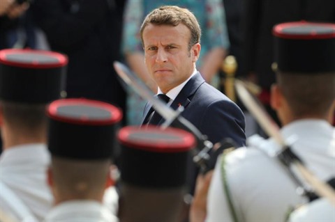 | Le président Emmanuel Macron lors d'une cérémonie marquant le 79e anniversaire de l'appel du 18 juin au Mont Valérien. |