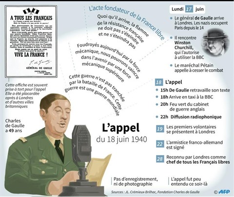 Chronologie et extraits de l'appel du 18 juin 1940. Photo : AFP/VNA/CVN |