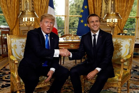 Les présidents français Emmanuel Macron (droite) et américain Donald Trump, le 13 juillet à Paris. Photo : AFP/VNA/CVN |
