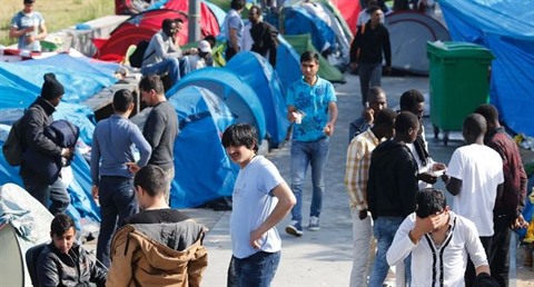 | Des réfugiés dans un camp de fortune, le 27 mai 2016 à Paris. |