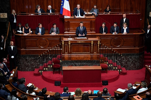 | Emmanuel Macron, le 3 juillet à la tribune du Congrès à Paris. |