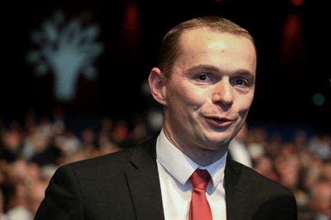 | Le député socialiste Olivier Dussopt, ici au congrès des maires de France à Paris, le 23 novembre 2017, est désormais secrétaire d'État auprès du ministre des Comptes publics. |