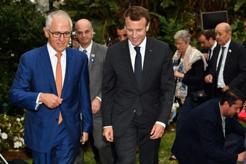 | Le président français Emmanuel Macron (droite) et le Premier ministre australien Malcolm Turnbull à Sydney le 2 mai. |