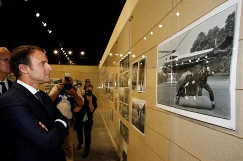 | Emmanuel Macron visite une exposition de photographies d'Annie Leibovitz à Arles, le 19 juillet. |