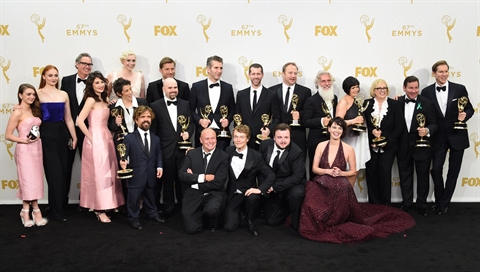 Mettant en scène de sanglantes rivalités claniques, Game of Thrones a triomphé avec 12 prix, dont celui du meilleur second rôle masculin dans un rôle dramatique pour Peter Dinklage, interprète du rusé Tyrion Lannister.
