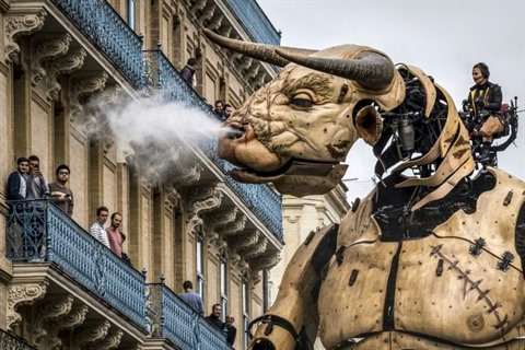Héros d’un opéra urbain de quatre jours qui se termine dimanche 4 novembre, le Minotaure, entièrement conçu pour Toulouse et intégralement financé par la métropole, s’installera à demeure dans la Ville rose, à partir du 9 novembre à la Halle de la Machine, où il pourra transporter jusqu’à 50 visiteurs sur son dos, à l’image du Grand éléphant de la compagnie à Nantes.