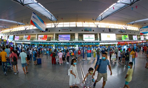 | Des passagers à l'aéroport international de Dà Nang. |