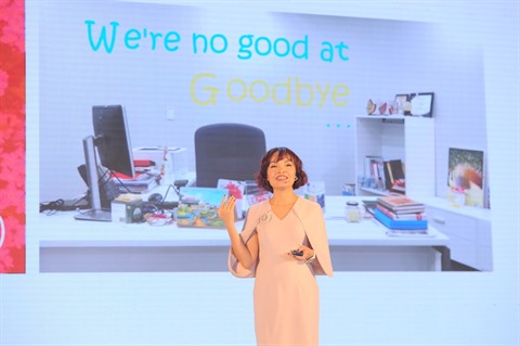 | Thanh Nguyên, Pdg et "chief Happiness Officer" d'Anphabe lors de la conférence. |