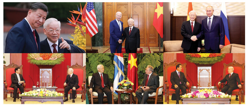 | Le secrétaire général Nguyên Phu Trong lors des rencontres de chefs d'États étrangers. |