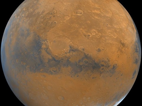| Une image reconstruite, fournie le 18 septembre 2008 par l'"US Geological Survey", représentant la planète Mars. |