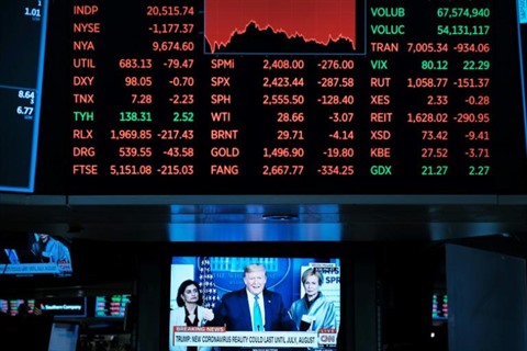 Après des mois de janvier et février plutôt calmes, Wall Street s'est brusquement effondrée en mars, effrayée par la propagation du coronavirus et ses conséquences pour la première puissance mondiale. Les grands indices new-yorkais ont pris l'eau, le Dow Jones connaissant le 16 mars la pire séance de son histoire (-13%) après la Grande Dépression de 1929 et le krach boursier d'octobre 1987.