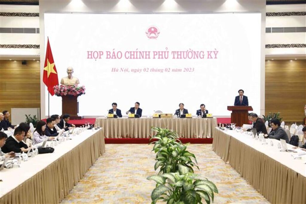| Conférence de presse périodique du gouvernement, le 2 février à Hanoï. |